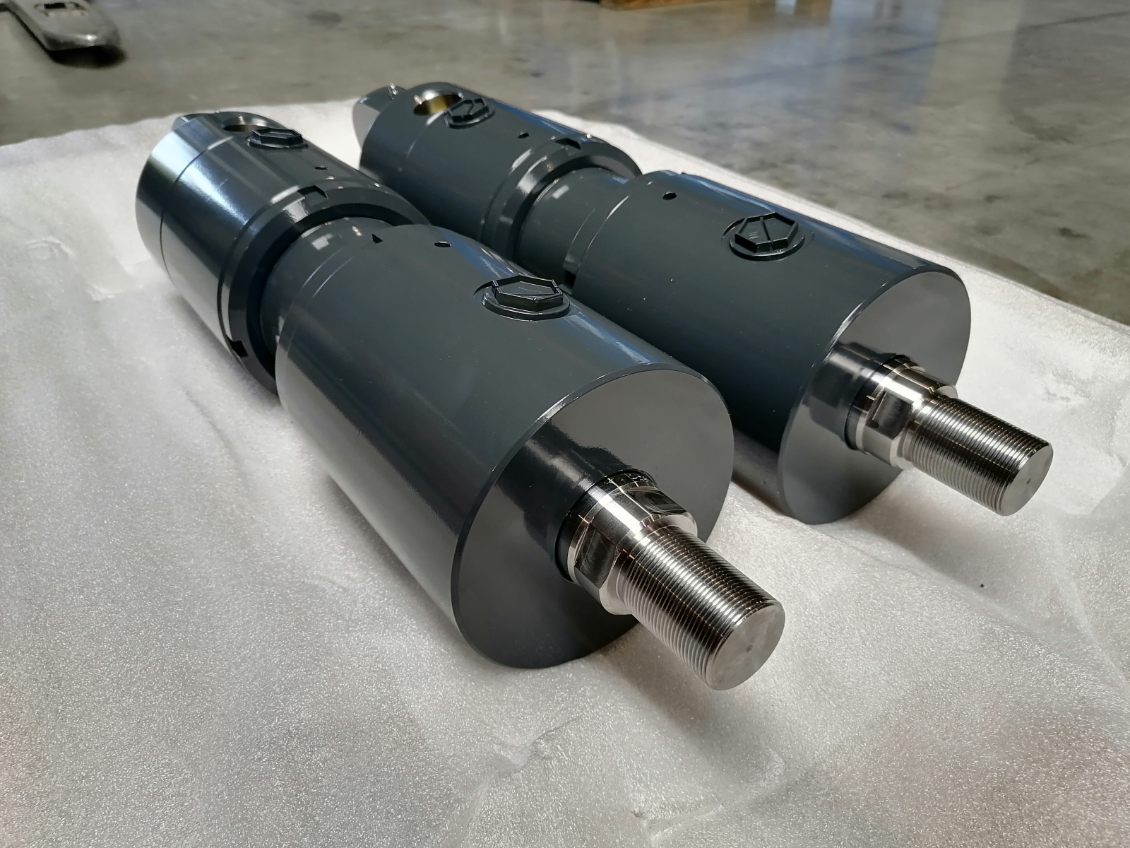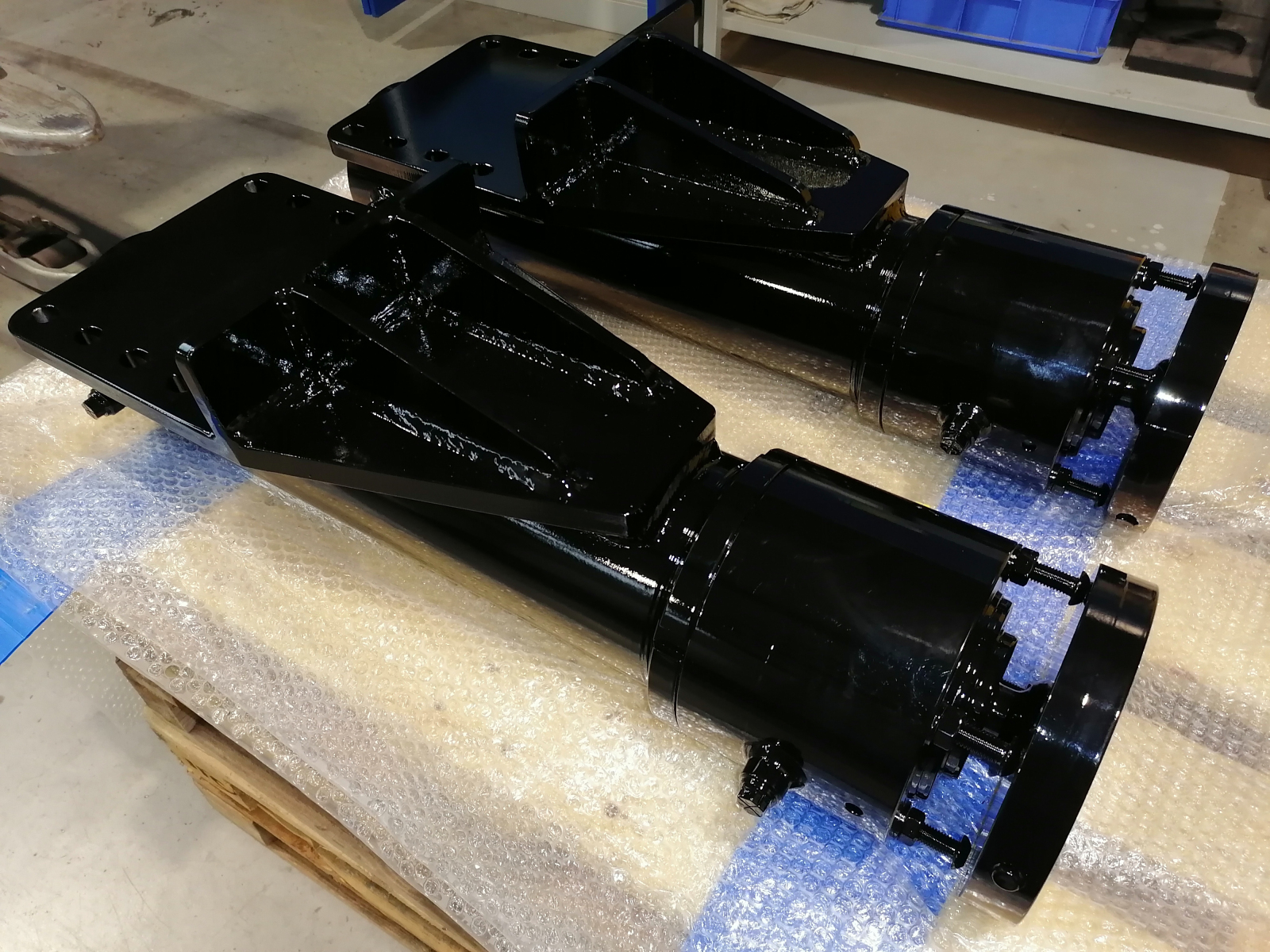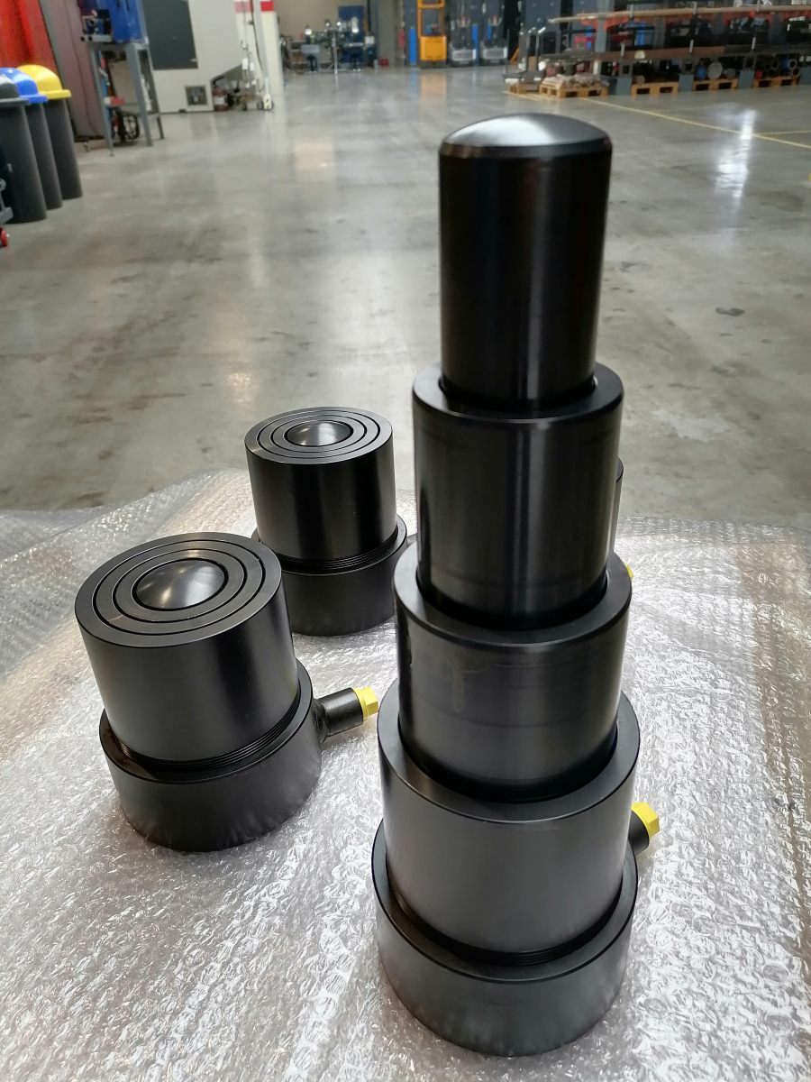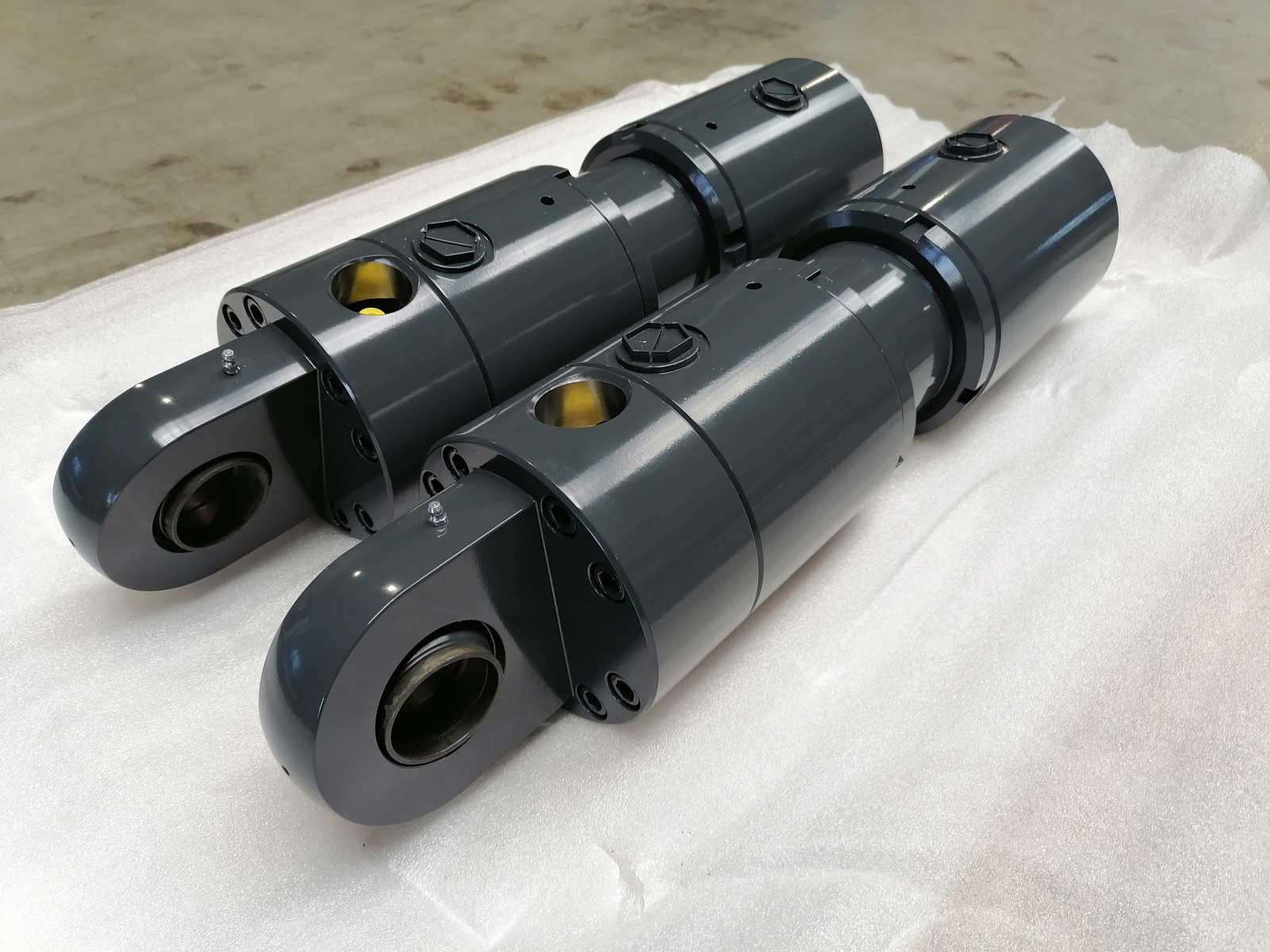 SONDERBAU: DOPPELTWIRKENDER TELESKOPSTÜTZZYLINDER Gemeinsam mit und für unseren Kunden konstruiert und liefert AGIROSSI eine Vielzahl von Sonderlösungen. Hier als aktuelles Beispiel ein Doppeltwirkender Schwerlastteleskopzylinder für den Geländeeinsatz eines Spezialnutzfahrzeuges. Technische Daten: Kolben/Stange ø140/125-110/90mmHub 700mmArbeitsdruck 150barBefestigungen: selbstausrichtende Druckplatte mit Kugelkopf an der Stange und Seitenflansch am ZylinderkörperMit beidseitigen Ölanschlüssen boden- und kopfseitig
