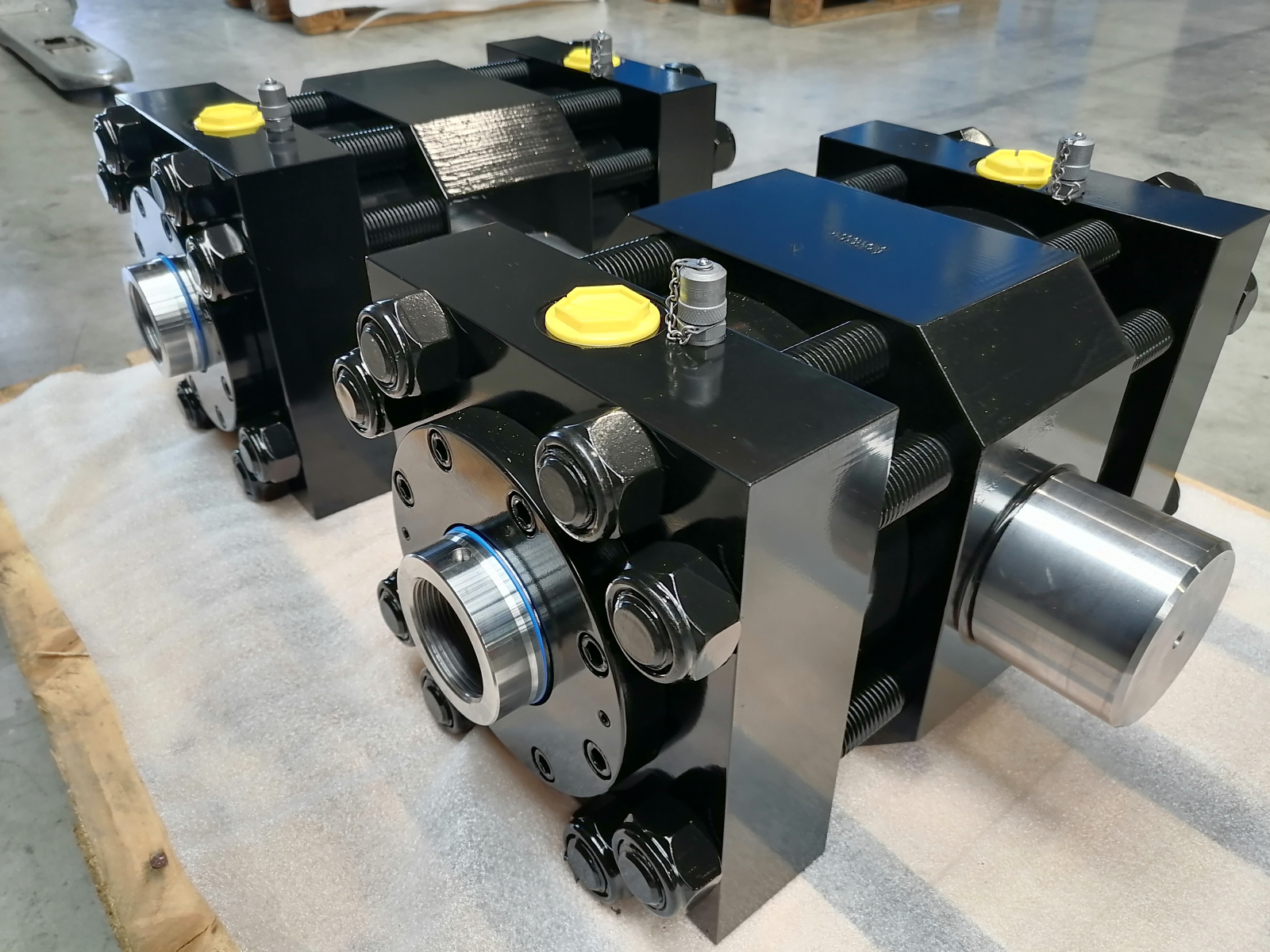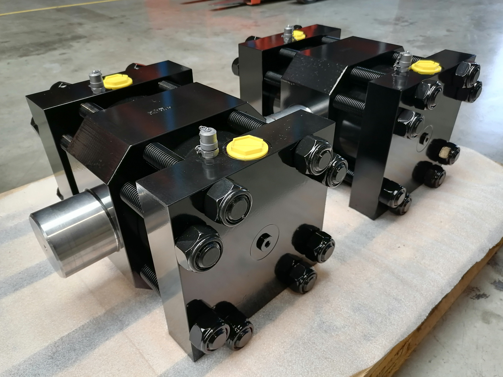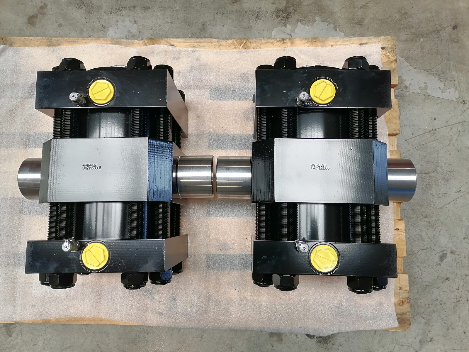 SONDERBAU: DOPPELTWIRKENDER TELESKOPSTÜTZZYLINDER Gemeinsam mit und für unseren Kunden konstruiert und liefert AGIROSSI eine Vielzahl von Sonderlösungen. Hier als aktuelles Beispiel ein Doppeltwirkender Schwerlastteleskopzylinder für den Geländeeinsatz eines Spezialnutzfahrzeuges. Technische Daten: Kolben/Stange ø140/125-110/90mmHub 700mmArbeitsdruck 150barBefestigungen: selbstausrichtende Druckplatte mit Kugelkopf an der Stange und Seitenflansch am ZylinderkörperMit beidseitigen Ölanschlüssen boden- und kopfseitig