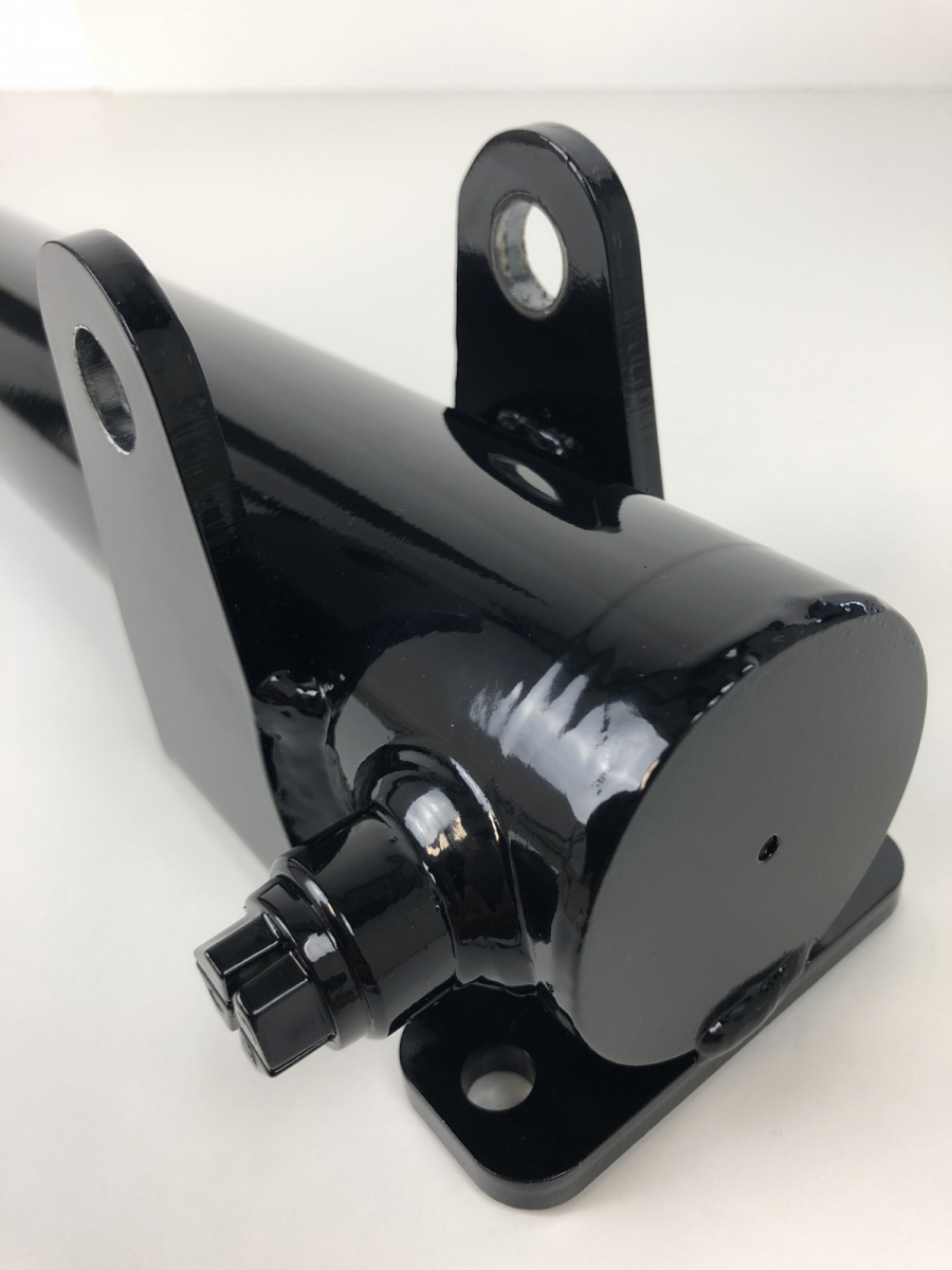 Kolben-ø 50mm, Stangen-ø 25mm, Hub 370mm, Arbeitsdruck 120bar, mit Lasche an der Stange und Haltelasche am Zylinderkörper